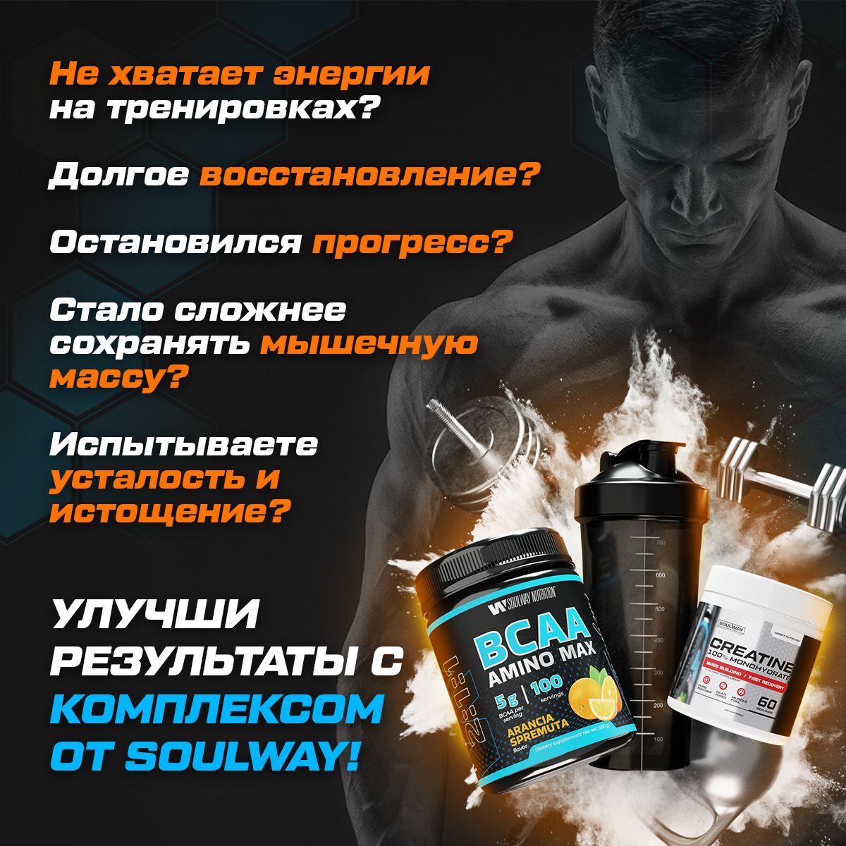 Добро пожаловать в мир спортивного питания с креатином моногидратом EnduroBoost и ВСАА Amino МАХ 2:1:1 + шейкер спортивный 700мл (в подарок) от Soul Way! Бца Amino MAX и Криатин моногидрад EnduroBoost - это уникальный спортивный комплекс, разработанный как для женщин, так и для мужчин, которые стремятся улучшить свою физическую форму.