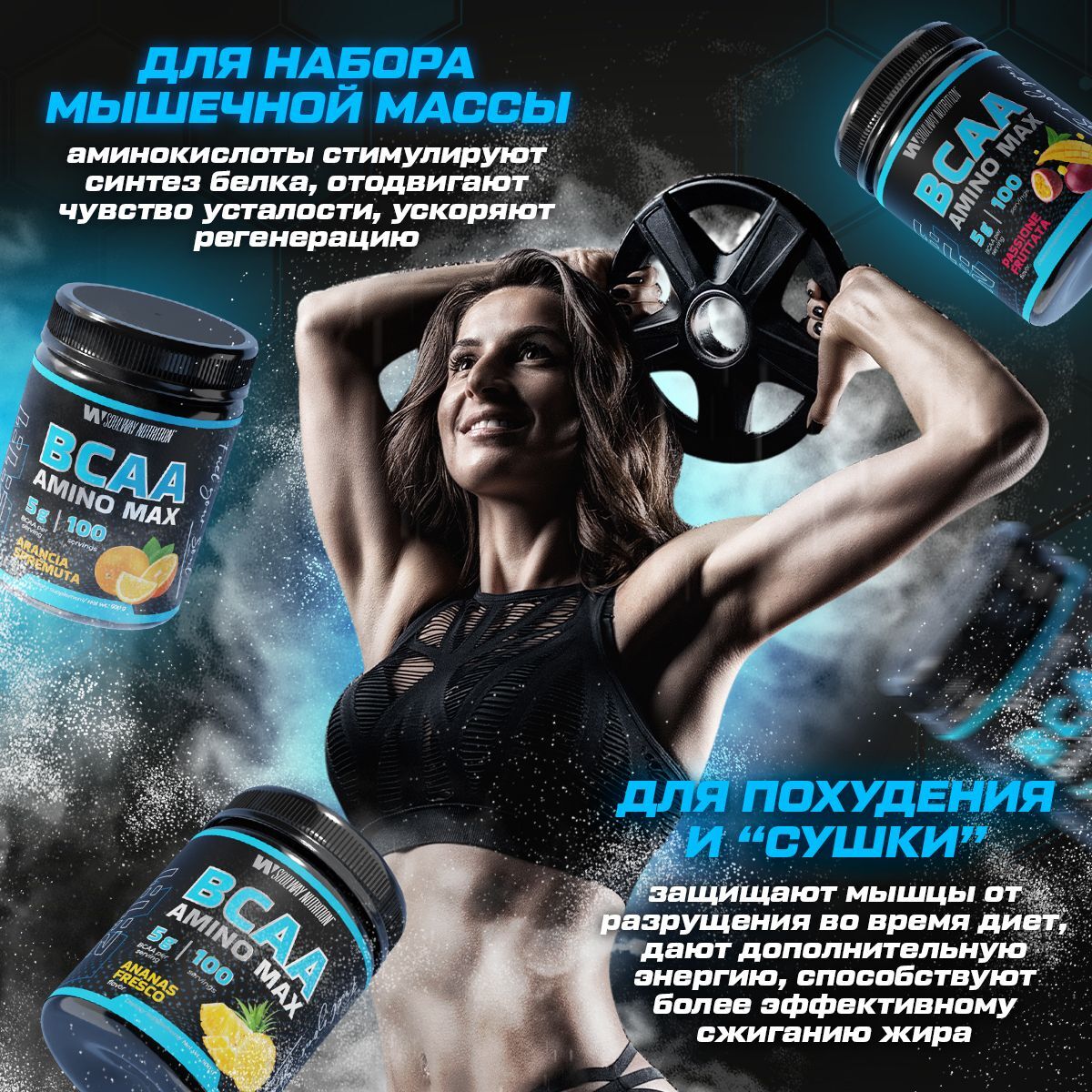 Порошок ВСА Amino MAX содержит в себе мощный комплекс аминокислот всаа такие как лейцин, изолейцин и валин. Они помогают увеличить мышечную массу, сжигать жир и повышать энергетический уровень, как и Креотин EnduroBoost. бцаа улучшают обмен