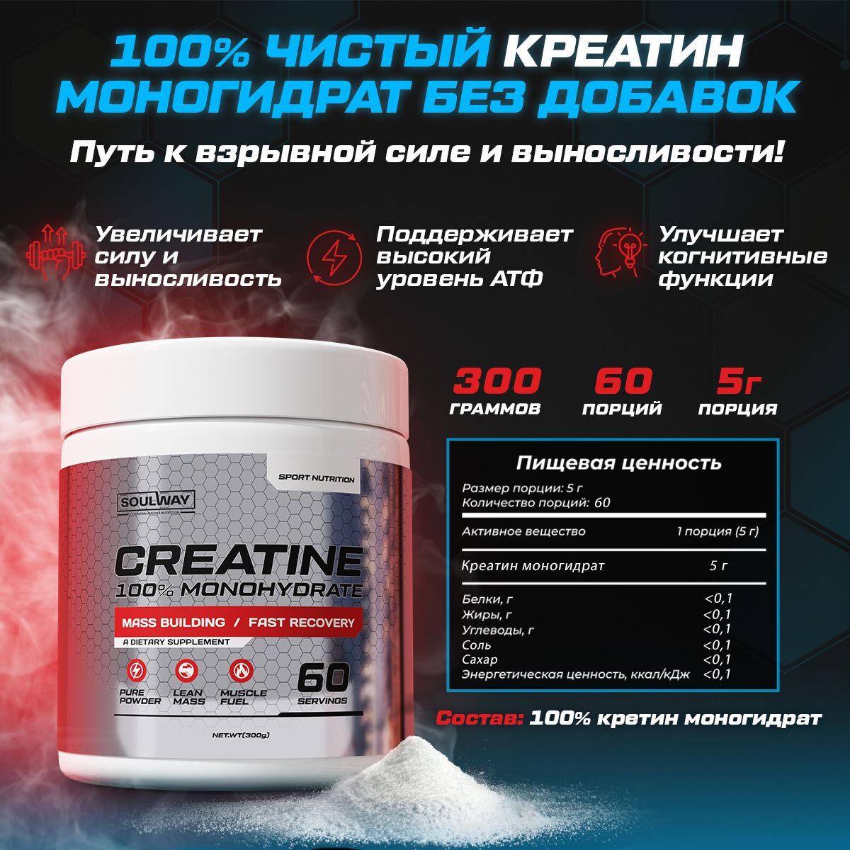 порошка идеально подходит для всех, кто стремится достичь высоких спортивных результатов и преодолеть свои личные рекорды. Попробуйте свой любимый классический креатин без вкуса уже сегодня! креатин моногидрат EnduroBoost это лучшее спорт питание для набора мышечной массы Состав нашего креатина моногидрата - забота о вас и вашем здоровье. Мы используем только высококачественный сырье