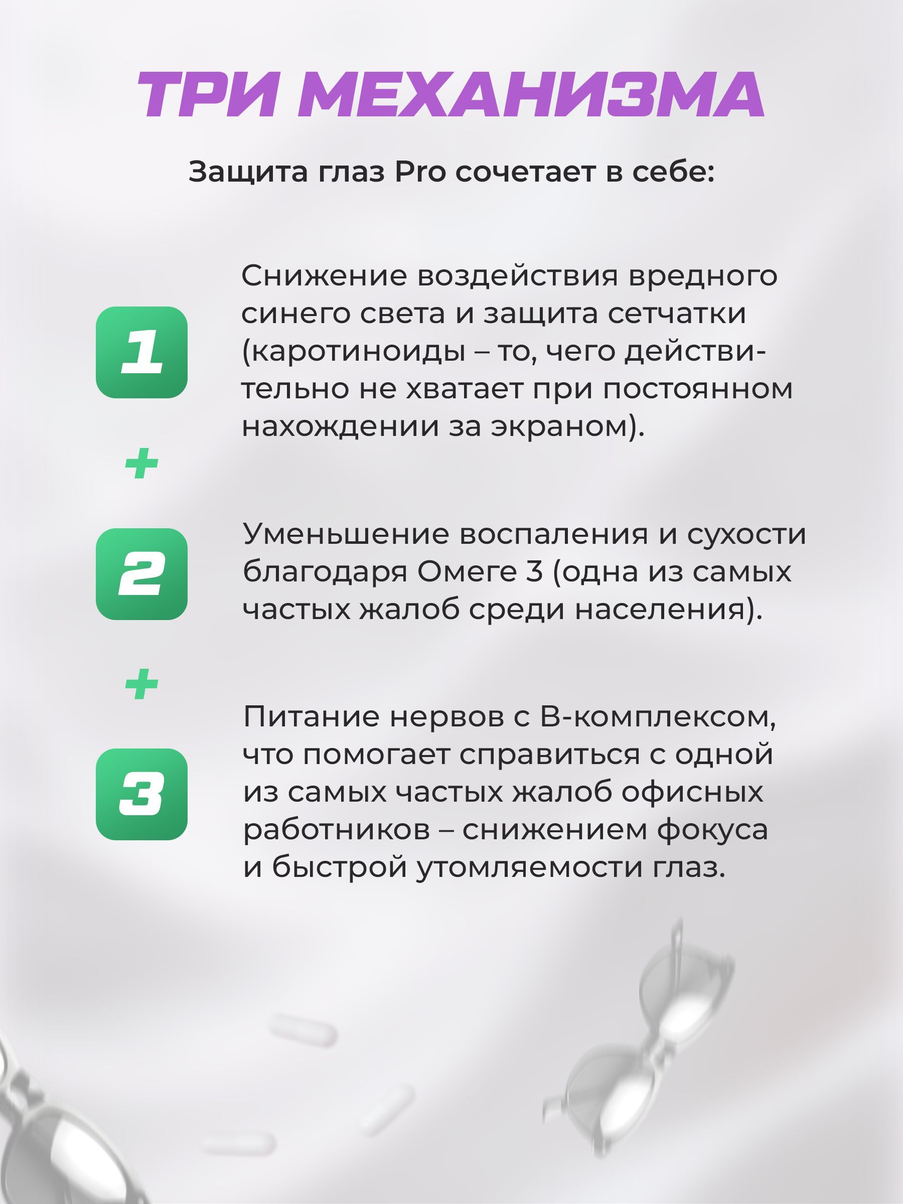 – Омега-3 — поддерживает слёзную плёнку и борется с воспалением.