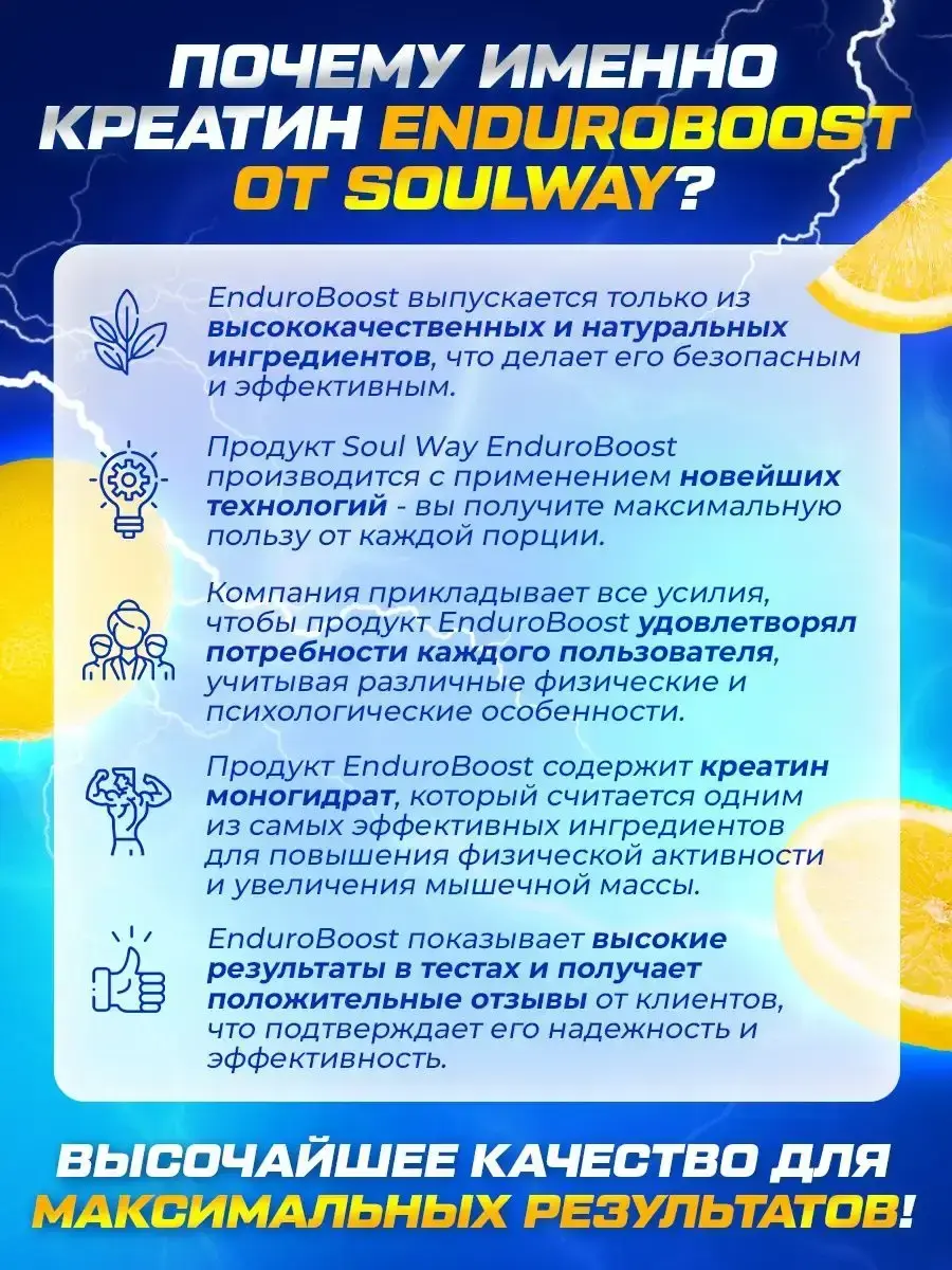 Откройте для себя новые возможности в мире спортивного питания с креатином бренда Soul Way! Наш креатин моногидрат - это сила, энергия и результаты, объединенные в одном продукте. Взаимодействие креатина с тренировками открывает новые горизонты для вашего спортивного прогресса.Спортпит от Soul Way - это не просто спортивное питание для мужчин и женщин, это возможность достичь своих целей в наборе веса и увеличении мышечной массы. Наш креатин моногидрат порошок - это инновационное решение для тех, кто стремится к профессиональному питанию и максимальным результатам в спорте.С добавлением креатина порошка от Soul Way в ваш рацион, вы получаете не только эффективное спортивное питание, но и возможность раскрыть свой потенциал на полную катушку. Не упускайте шанс включить наш креатин моногидрат в вашу тренировочную программу и достичь новых высот в своем спортивном развитии. Soul Way - ваш верный партнер на пути к успеху в спорте!