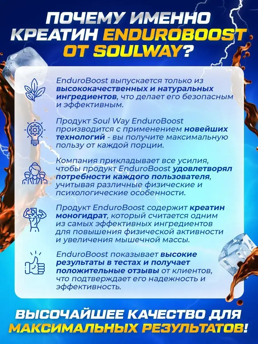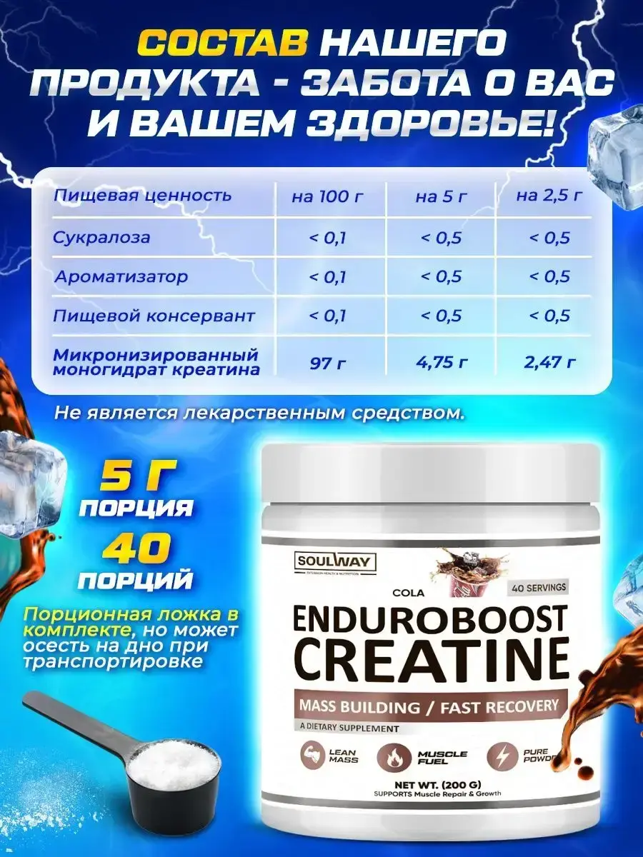 Откройте для себя новые возможности в мире спортивного питания с креатином бренда Soul Way! Наш креатин моногидрат - это сила, энергия и результаты, объединенные в одном продукте. Взаимодействие креатина с тренировками открывает новые горизонты для вашего спортивного прогресса.Спортпит от Soul Way - это не просто спортивное питание для мужчин и женщин, это возможность достичь своих целей в наборе веса и увеличении мышечной массы. Наш креатин моногидрат порошок - это инновационное решение для тех, кто стремится к профессиональному питанию и максимальным результатам в спорте.С добавлением креатина порошка от Soul Way в ваш рацион, вы получаете не только эффективное спортивное питание, но и возможность раскрыть свой потенциал на полную катушку. Не упускайте шанс включить наш креатин моногидрат в вашу тренировочную программу и достичь новых высот в своем спортивном развитии. Soul Way - ваш верный партнер на пути к успеху в спорте!