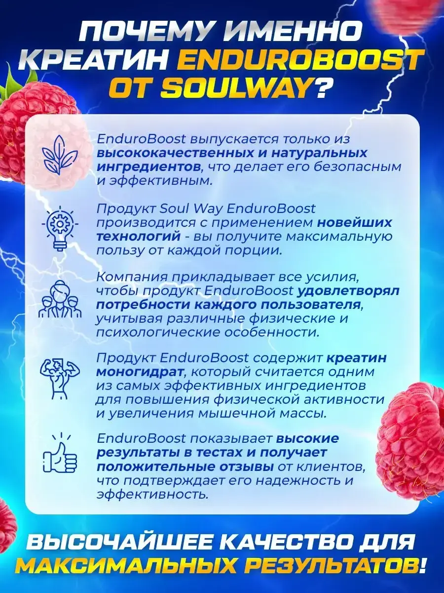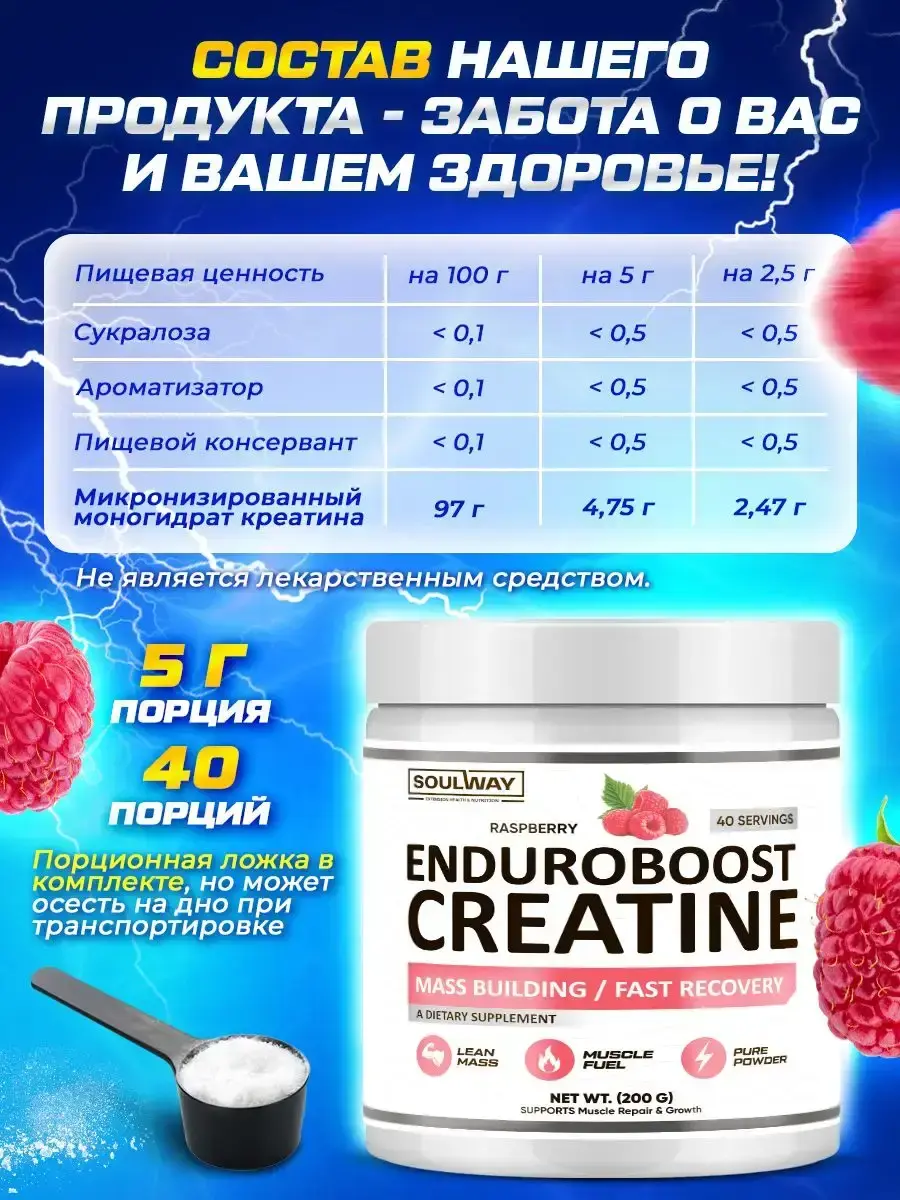Откройте для себя новые возможности в мире спортивного питания с креатином бренда Soul Way! Наш креатин моногидрат - это сила, энергия и результаты, объединенные в одном продукте. Взаимодействие креатина с тренировками открывает новые горизонты для вашего спортивного прогресса.Спортпит от Soul Way - это не просто спортивное питание для мужчин и женщин, это возможность достичь своих целей в наборе веса и увеличении мышечной массы. Наш креатин моногидрат порошок - это инновационное решение для тех, кто стремится к профессиональному питанию и максимальным результатам в спорте.С добавлением креатина порошка от Soul Way в ваш рацион, вы получаете не только эффективное спортивное питание, но и возможность раскрыть свой потенциал на полную катушку. Не упускайте шанс включить наш креатин моногидрат в вашу тренировочную программу и достичь новых высот в своем спортивном развитии. Soul Way - ваш верный партнер на пути к успеху в спорте!